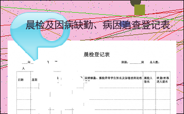 以下为《晨检及因病缺勤、病因追查登记表》的无排版文字预览,完整内容请下载